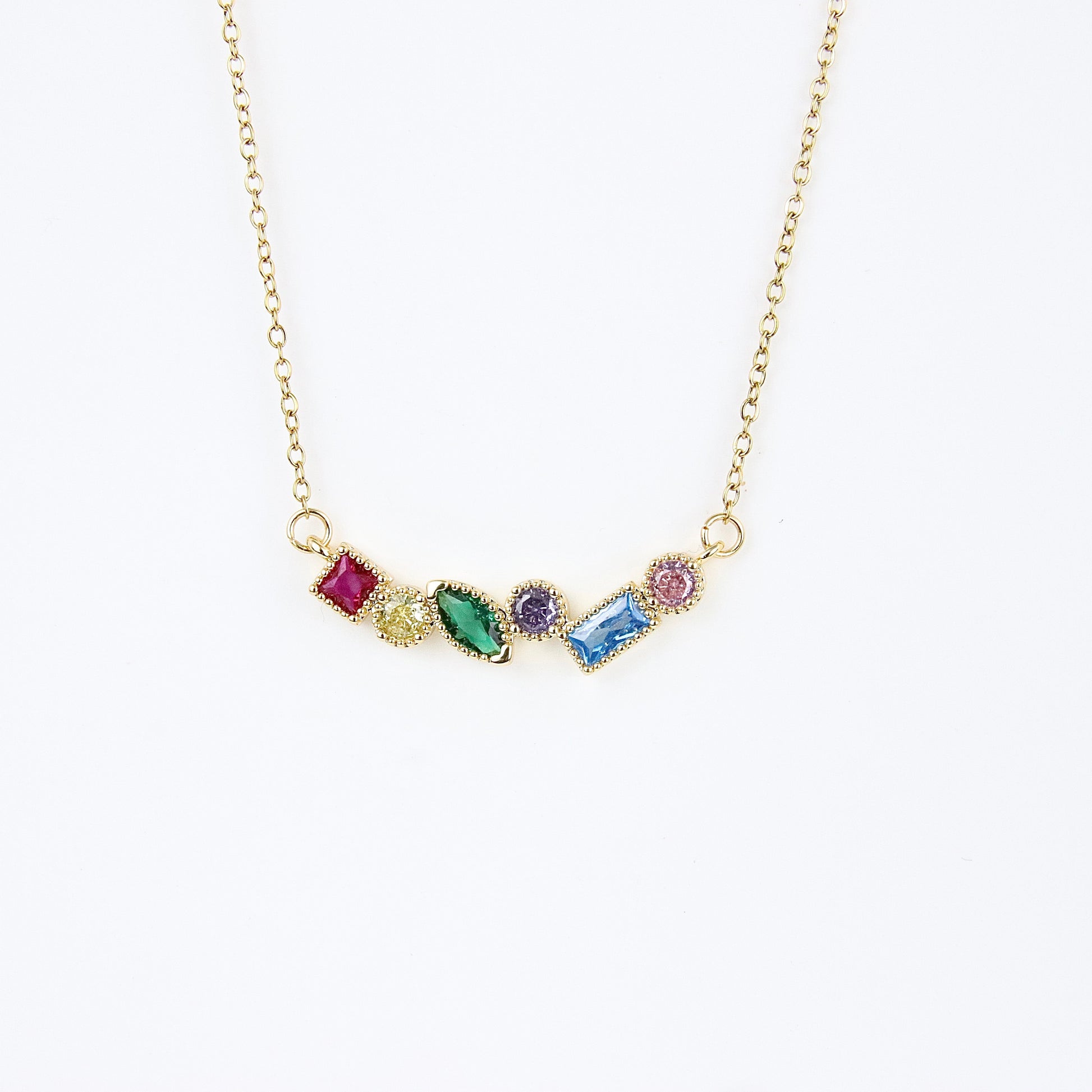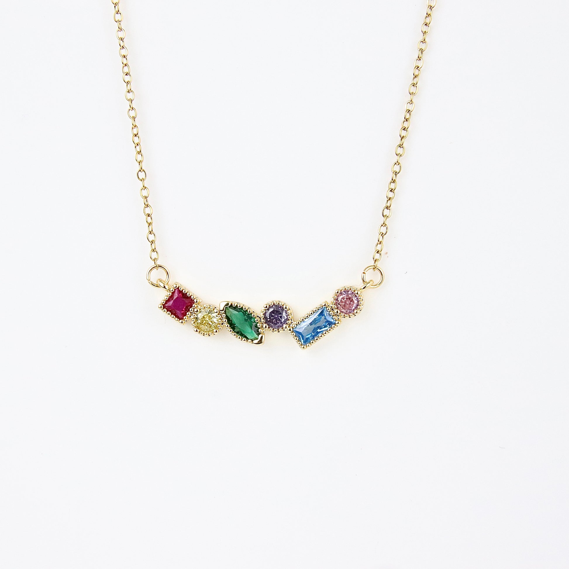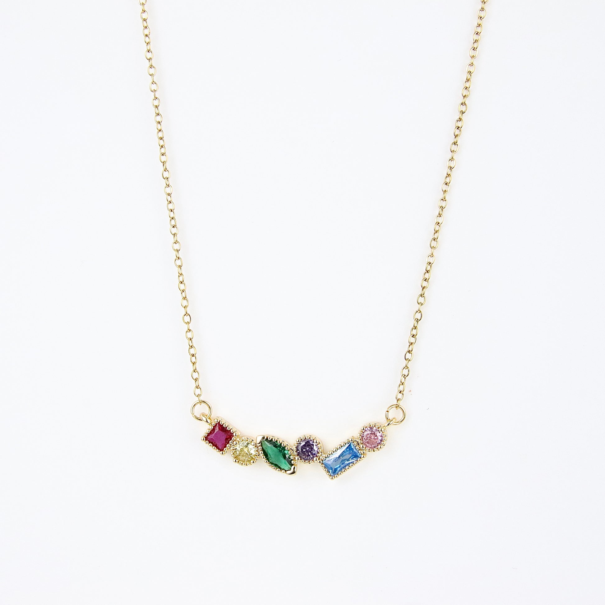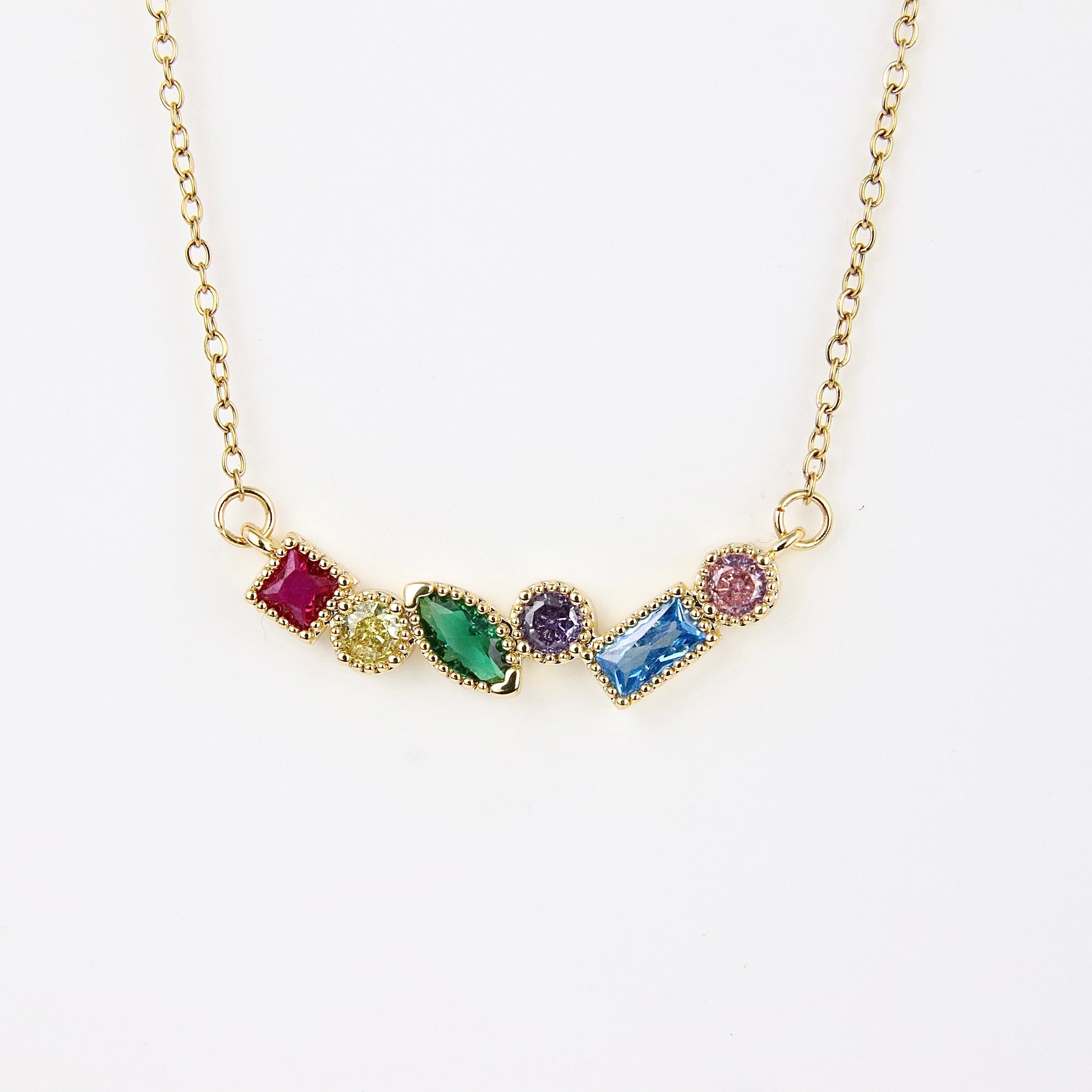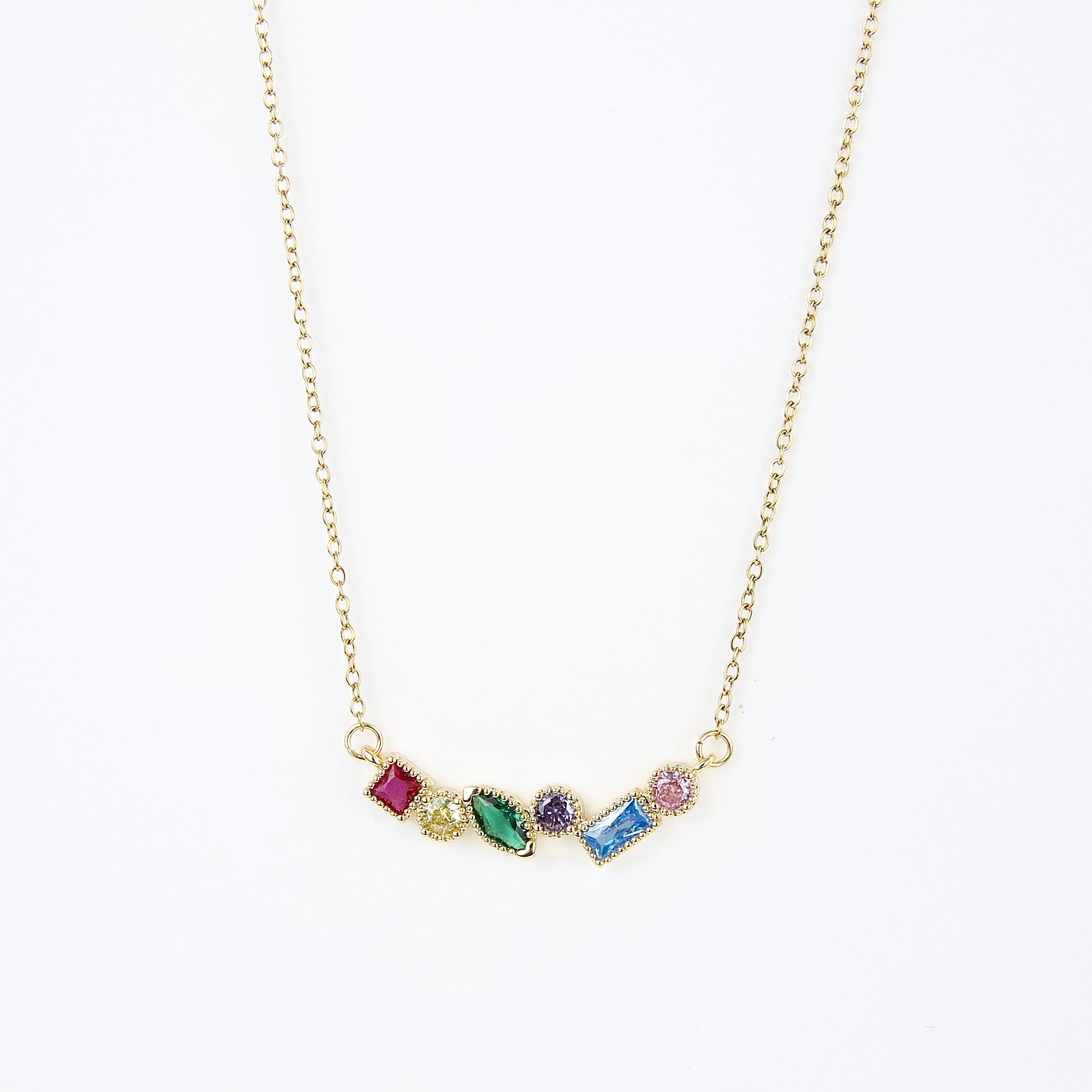 Scopri l'eleganza senza tempo della nostra collana in oro, impreziosita da una selezione di pietre multicolori che catturano la luce e l'attenzione. Ogni pietra è sapientemente incastonata, creando un gioco di colori che si adatta perfettamente a qualsiasi outfit, dal casual all'elegante. Realizzata in acciaio di alta qualità con lunghezza di (?), questa collana non solo offre una bellezza straordinaria, ma garantisce anche durabilità e resistenza nel tempo. Disponibile anche in argento, è un accessorio versatile che può essere indossato in ogni occasione, rendendola un regalo perfetto per te stessa o per una persona speciale. Scegli Kittymiaojewelery per un tocco di lusso e raffinatezza nel tuo gioiello quotidiano.