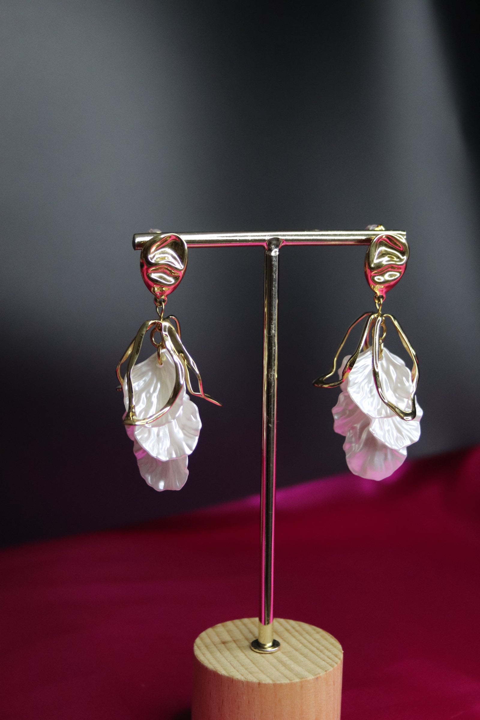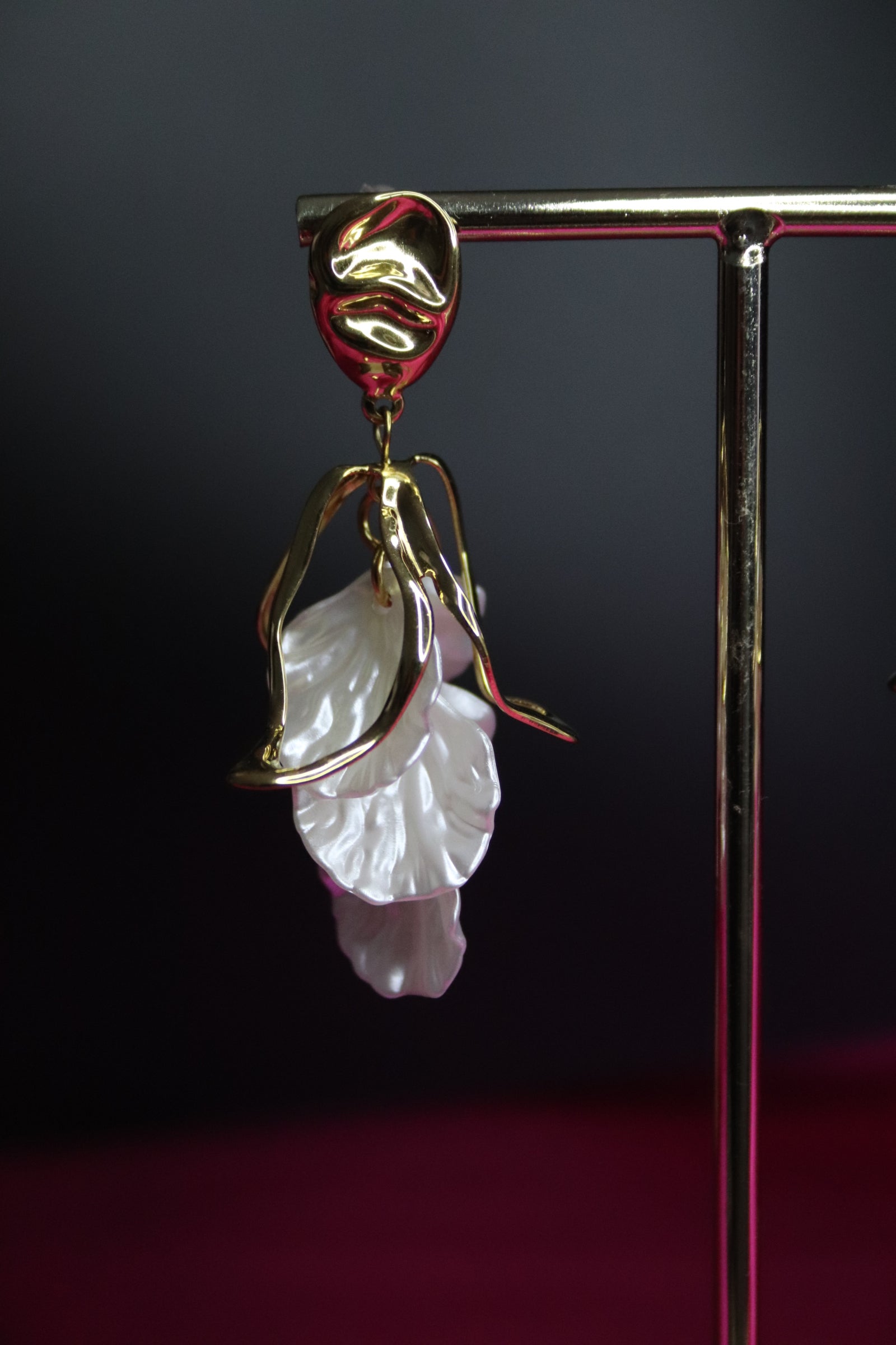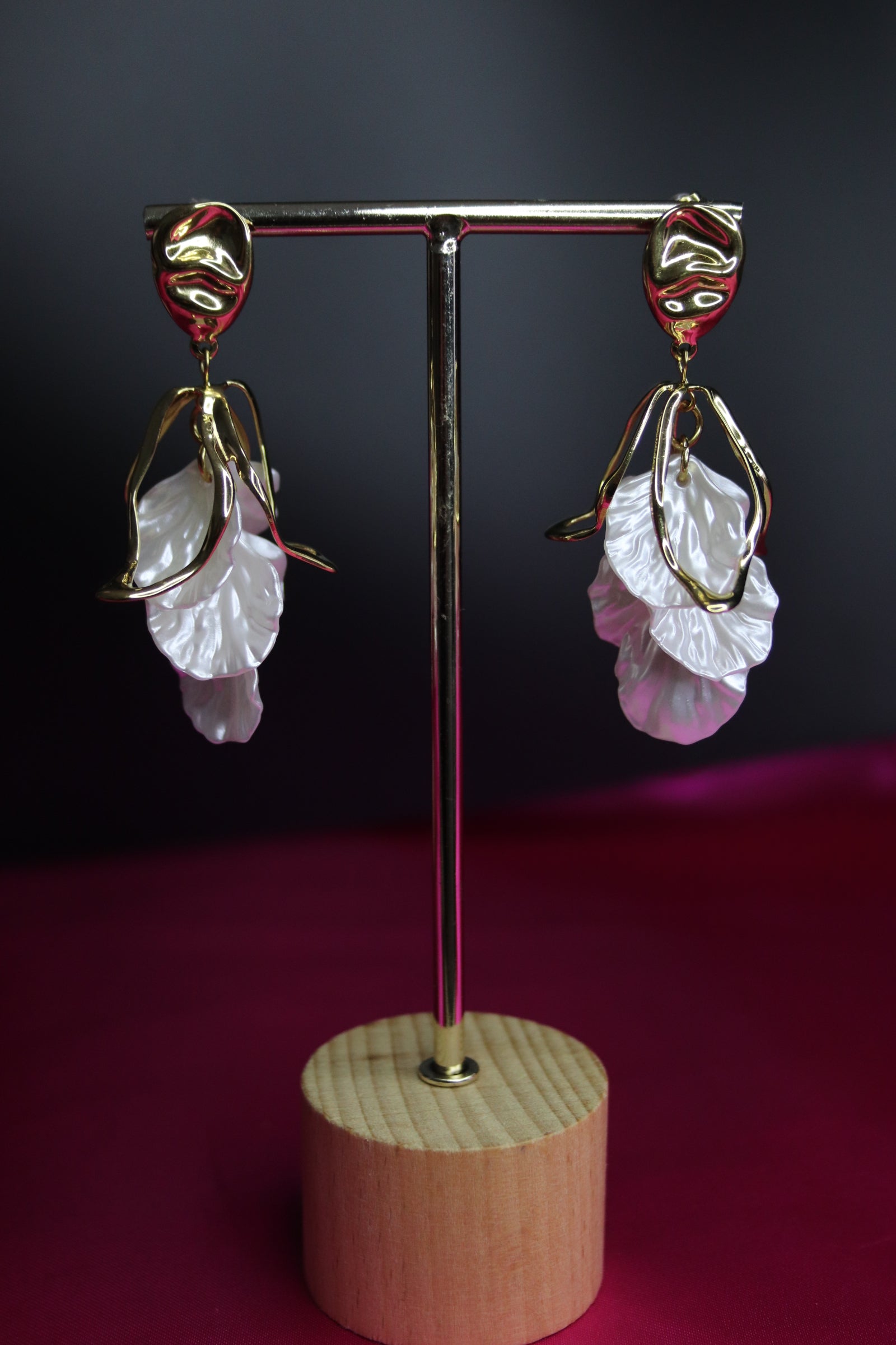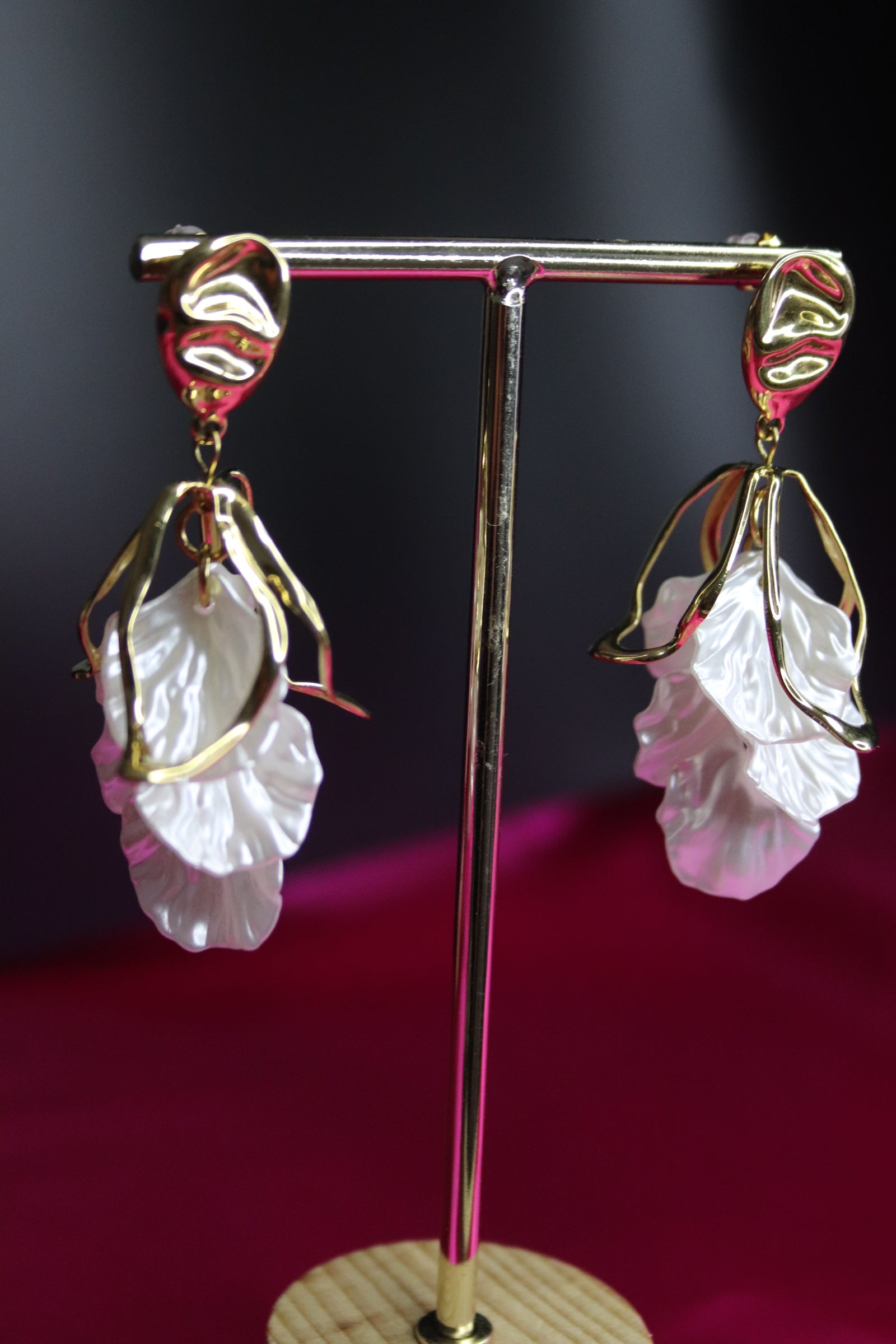 Esplora la grazia e l’eleganza con questi orecchini in acciaio inossidabile dal design organico e raffinato. Ogni orecchino è caratterizzato da una struttura dorata fluida e sinuosa che avvolge un pendente in madreperla, scolpito in una forma morbida e ondulata che ricorda le onde del mare. La combinazione tra l’effetto lucente dell’acciaio dorato e la delicatezza della madreperla conferisce a questo accessorio un fascino unico e ricercato. Perfetti per chi ama aggiungere un tocco di lusso moderno al proprio stile, questi orecchini sono ideali per serate speciali o per dare un twist sofisticato al look di tutti i giorni. Scegli un gioiello che cattura la luce e lo sguardo.